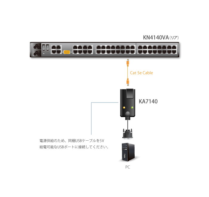 ※. 電源供給のため、同梱のUSBケーブルを5V給電可能なUSBポートに接続してください。