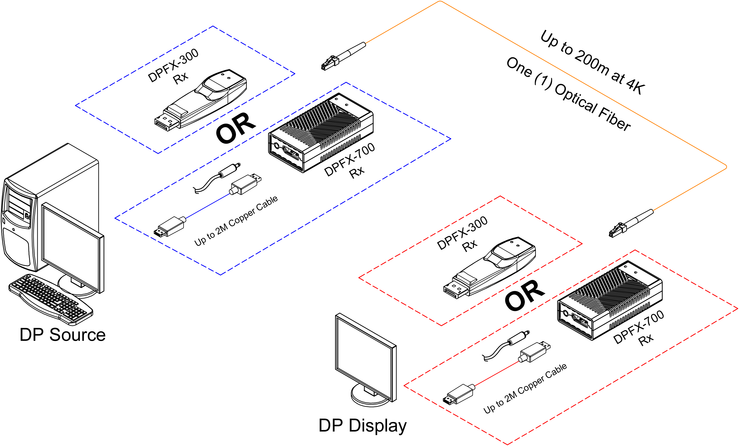 | DPFX-700-TR | [DisplayPort 1.2 (4K@60Hz)] [マルチモード:300m (LC/1芯)] [MST] [DPFX-300-TR互換] | お問合せ |