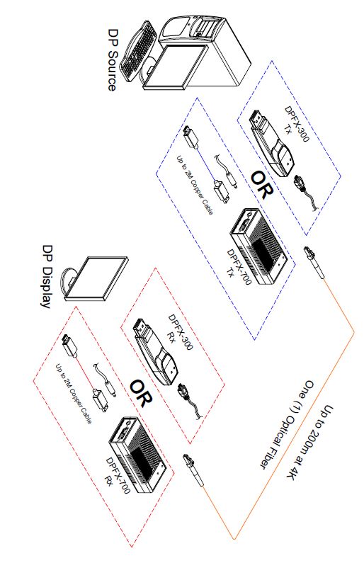 | DPFX-700-TR | [DisplayPort 1.2 (4K@60Hz)] [マルチモード:300m (LC/1芯)] [MST] [DPFX-300-TR互換] | お問合せ |
