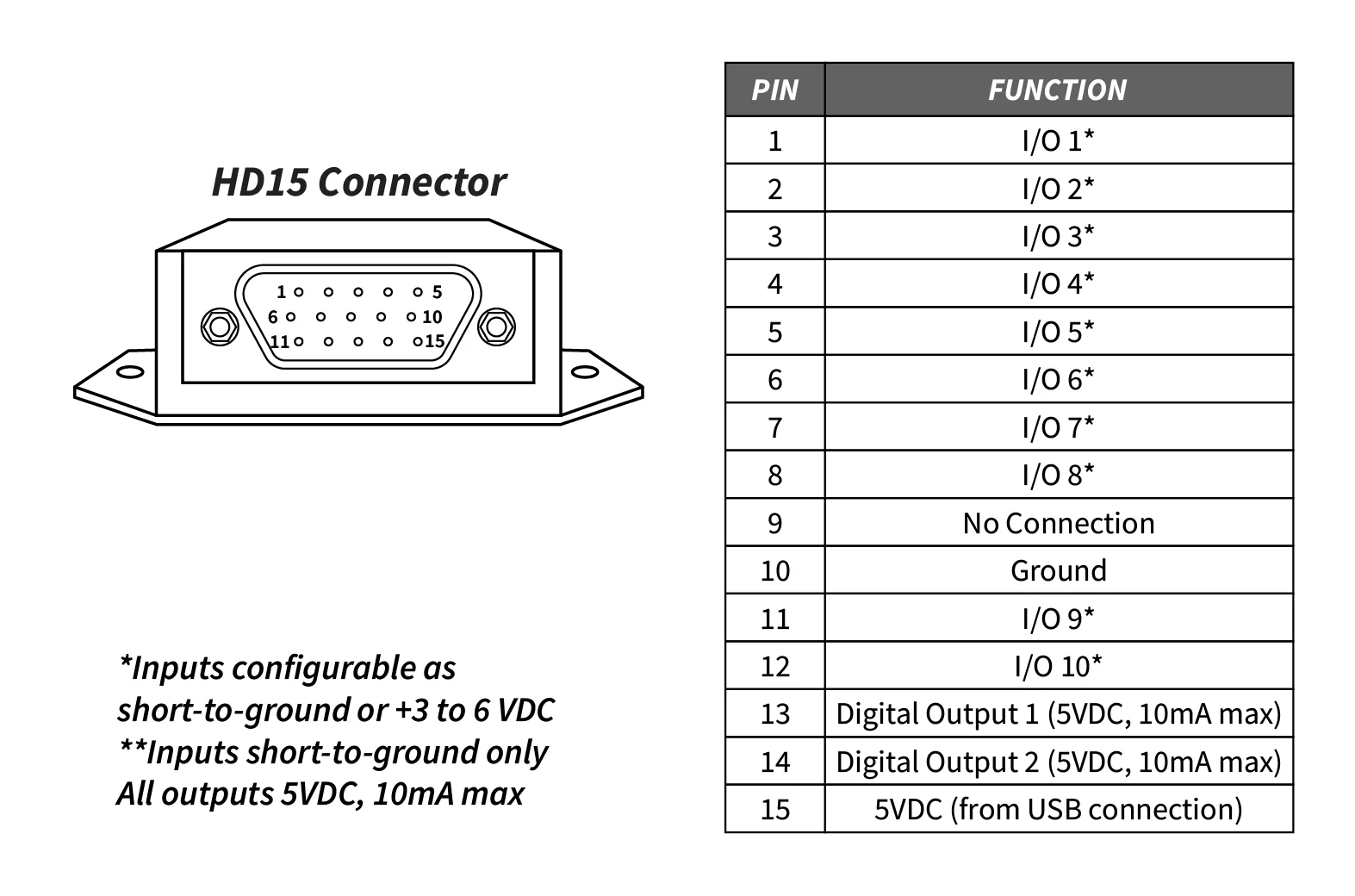 | GPIO I/O数 | 10個の設定可能なポート (5VDC プルダウン入力, 5VDC 出力) 2個の専用5V出力 |
