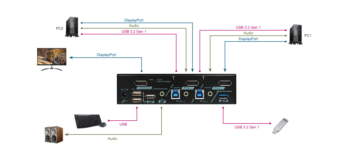 | PKAG-G3112 | [DisplayPort:4K@60Hz(4:4:4)] [入力:2] [出力:1] [USB 3.2 Gen1 (5Gbps)] [オートスキャン] [アナログステレオ出力切替] [EDID管理] [制御:フロントボタン/ホットキー] | お問合せ |